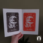 Designed, carved and handprinted by me. As I'm a human, some slight differences will vary in each print.